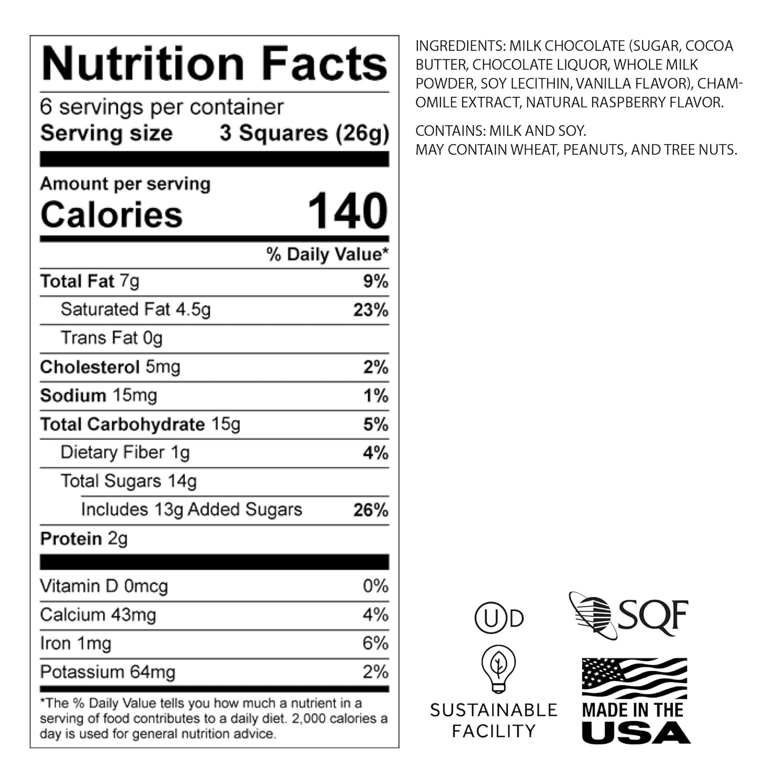 Why You’ll Love Astor Relax Chocolate • Soothing Chamomile & Raspberry Infusion — calming, fruity flavor in every bite • Premium Belgian Milk Chocolate — smooth, creamy, and indulgent taste • Perfect Gift for Any Occasion — Valentine’s, birthdays, or self-care treats • 18 Individually Wrapped Squares — easy to share or enjoy on the go • Made in USA, Kosher & Certified Safe — crafted in a Level 3 SQF facility